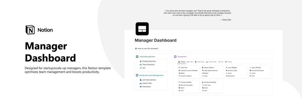 Optimize your team management with this Notion template, specifically designed for managers in startup/scale-up environments.
